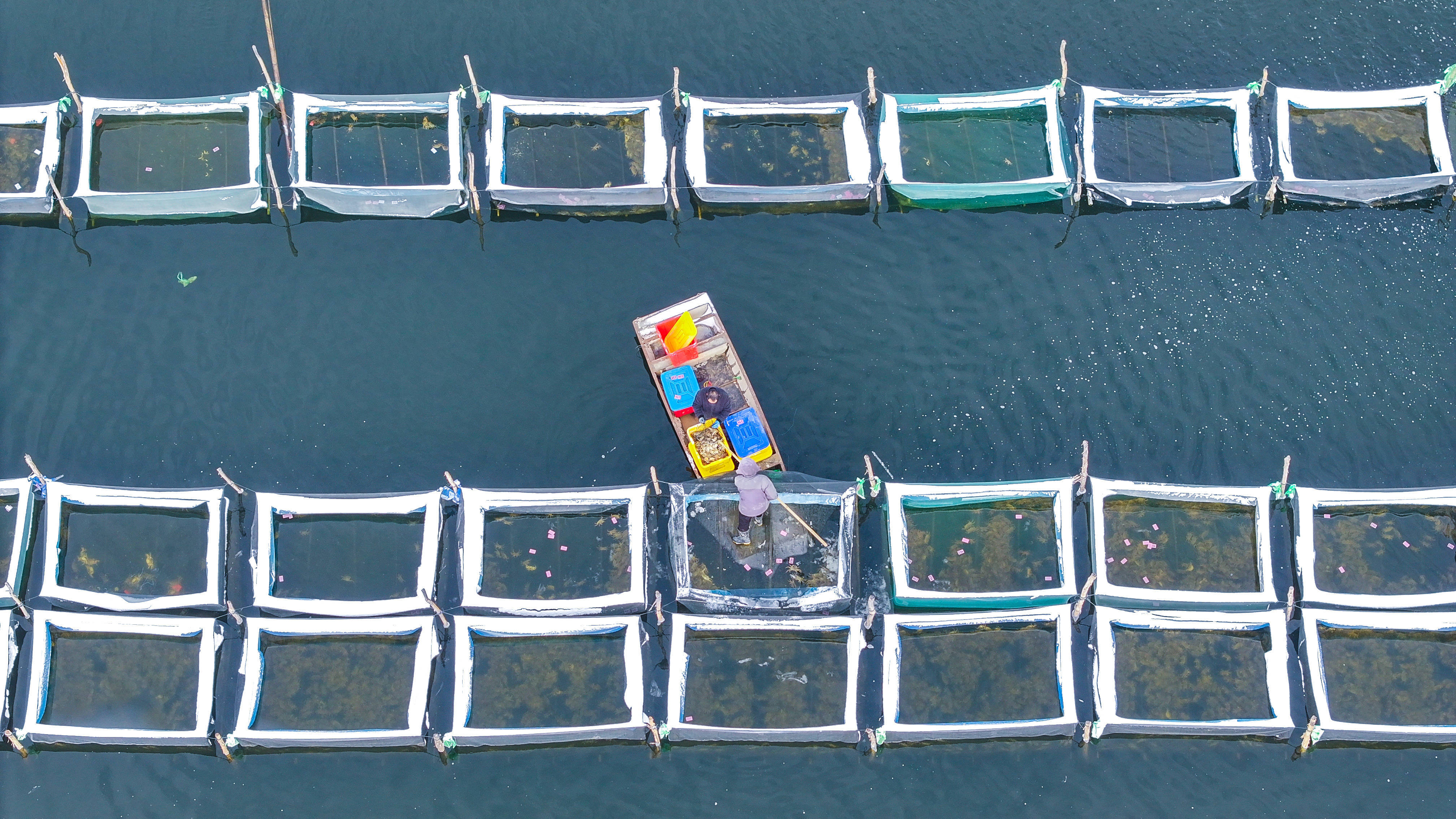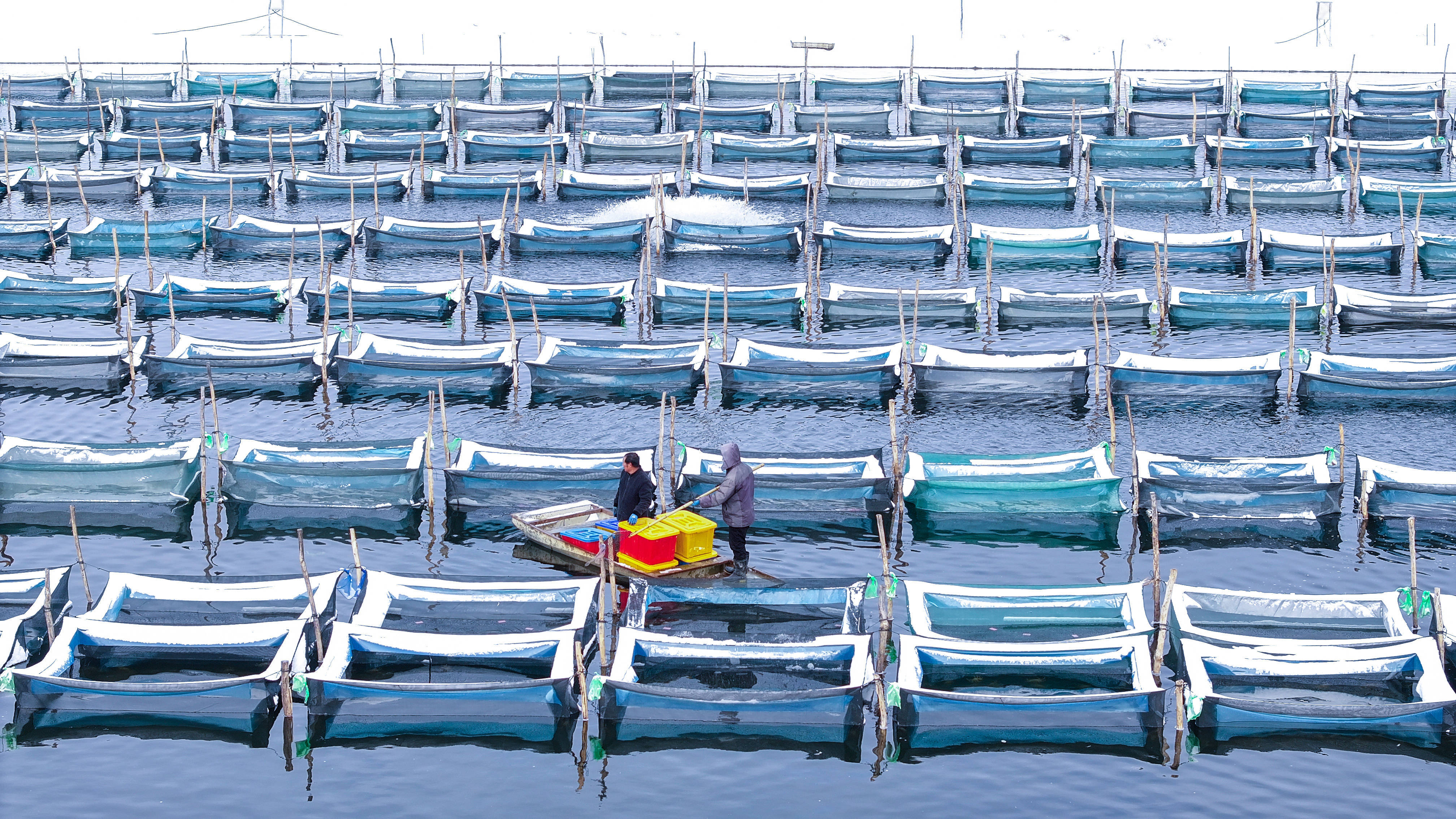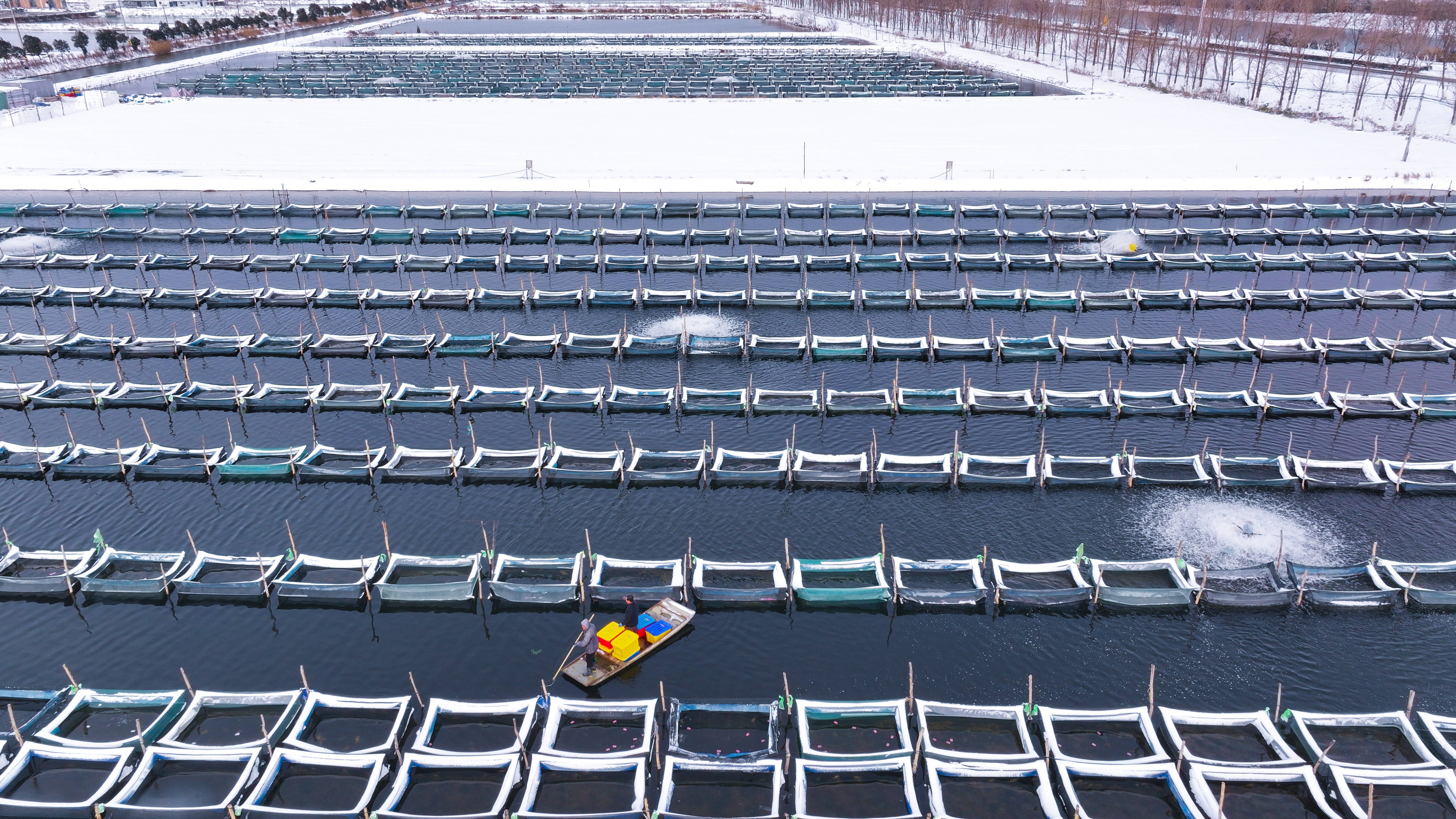 以上图片:2026年1月20日,在江苏省宿迁市泗洪县临淮镇城头社区螃蟹养殖基地,蟹农在捕捞螃蟹。CICPHOTO/李佳 摄